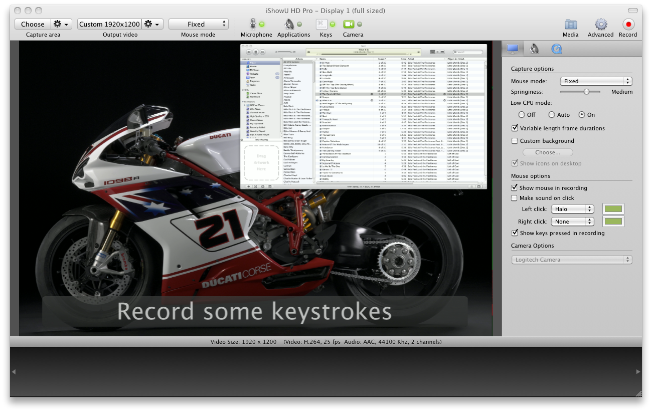 iShowU HD has been rebuilt from the ground up to provide blazing real-time performance with an easy-to-use interface. With professional features like real time compositing, drag-and-drop to FCP & GPU based scaling just a single click away, iShowU HD has all the power you’ll ever need at a price you can deal with.