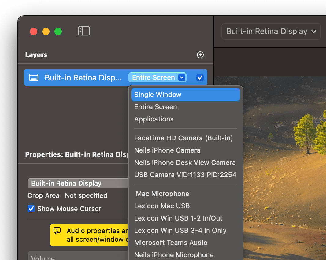 iShowU gives you the best of both worlds: a simple UI for quick and easy recording, and a 'pro' UI for advanced customization. Switch between them anytime you want, without restarting the app. "Simple" mode gets the job done - until it doesn't. Then you need "pro" mode. Pro mode gives you layers, which is where the magic happens. Composite video and audio layers together in realtime to create amazing videos. No need for multiple apps, iShowU can do it all!